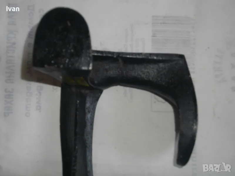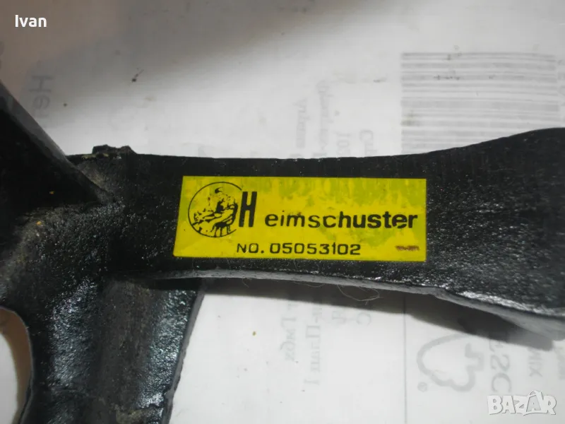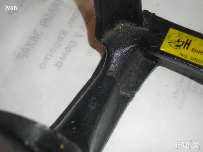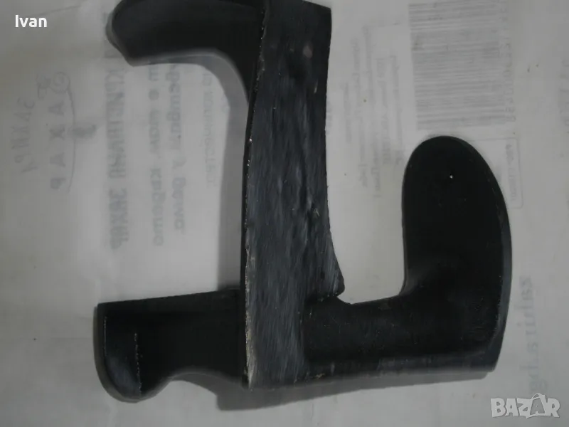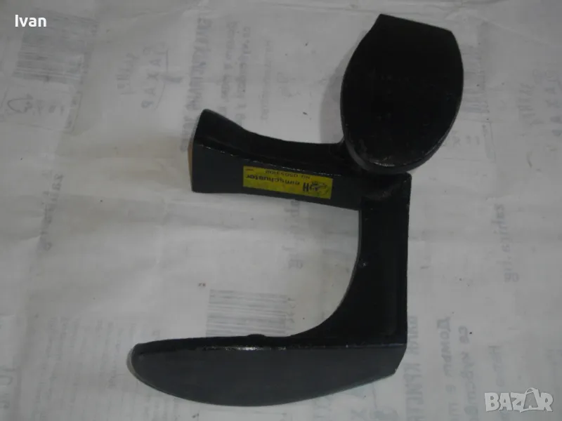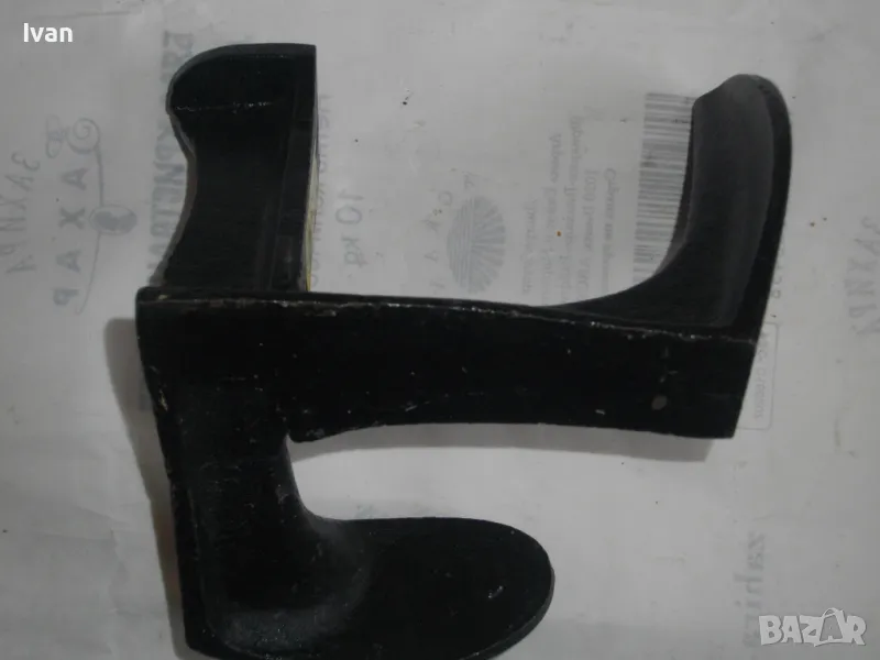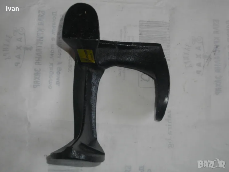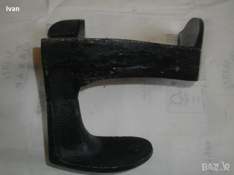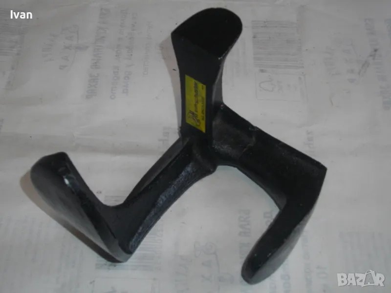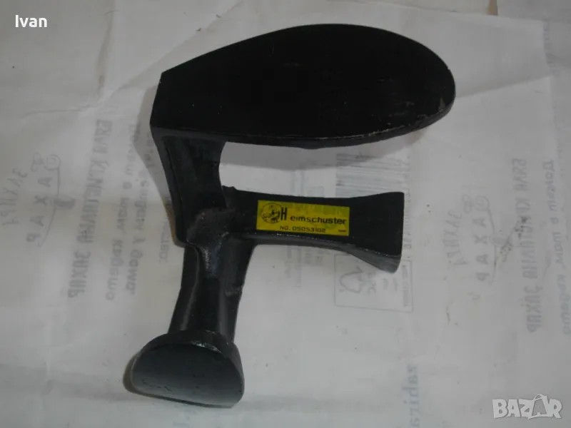 ОПИСАНИЕ на нова немска наковалня, маркирана: Немска марка Heimschuster - височина 170 мм, тристранна, тегло - 2,200 кг. Съвсем нова професионална голяма обущарска наковалня.Немско оригинално производство. Масивна,здрава,висококачествена.В отлично техническо състояние.Стой здраво и стабилно изправена на всяка от страните си.Дължина цялостна-17см,ширина-17см.Страна голям заострен край за нахлузване на цяла обувка-15см,страна малка за нахлузване на лицевата част-10см,страна за нахлузване на ток на обувка-6х4,5см.Наковалнята е от дебело ковано желязо.Тежка,масивна и колоритна.