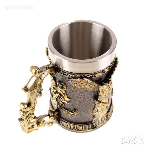 Стилна чаша, изработена от полирезин и метал.
