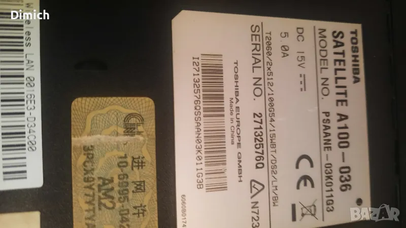 Лаптоп Toshiba A100 -036 → Обява 48270756