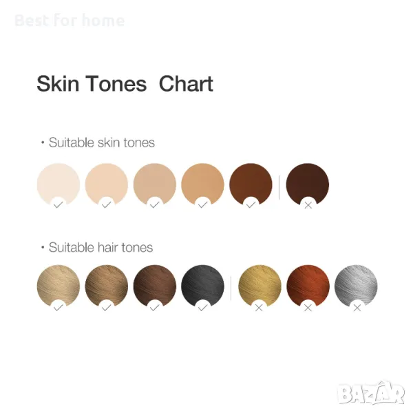 Избягвайте да използвате върху естествено тъмна или наскоро придобила тен кожа. Този инструмент за красота е идеален за използване с по-светли тонове на кожата и кафява до черна коса. За допълнителна безопасност COSBEAUTY има вграден интелигентен сензор, който открива дали тонът на кожата е твърде тъмен за третиране и няма да пулсира, ако кожата има твърде много пигмент за третиране.