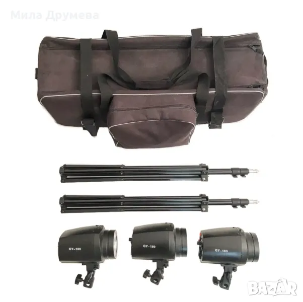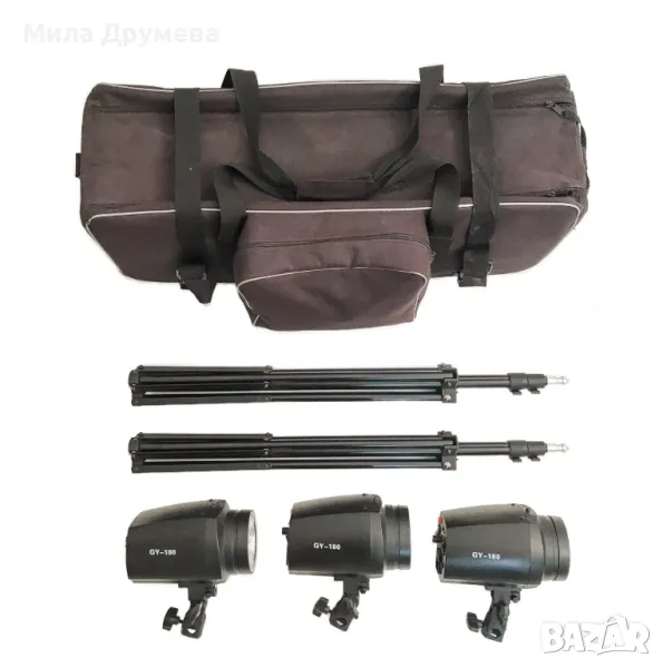 Нов сет за студийно осветление с три светкавици и аксесоари.