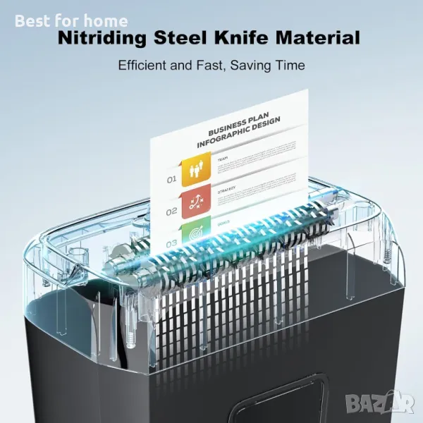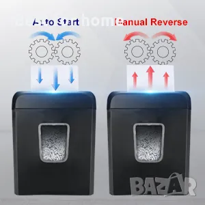【Лесна работа и безопасна защита】 Функцията за автоматично стартиране/стоп и ръчно обръщане предпазва шредера за хартия от разочарование от засядане на хартия. Функцията за защита от прегряване се справя с проблемите при използване на шредера и удължава живота му. Шредерът за документи ще спре да работи, след като повдигнете главата, като ви предпазва.