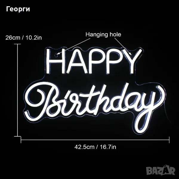 лед неон светещ надпис за парти декорация. размери има на една от снимките.