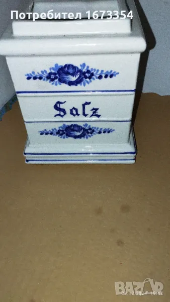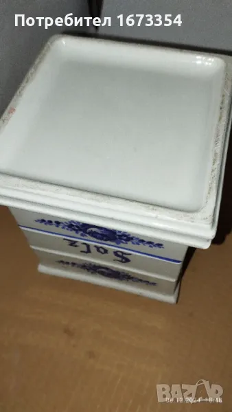 Продавам 1)буркан за сол порцеланов голям нов без капак,с размери височина 15 см. отвор 7,5см ширина 11 см,долу 12,см Цена 15,00лв