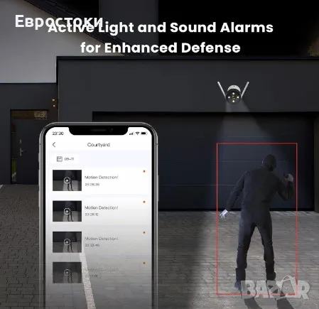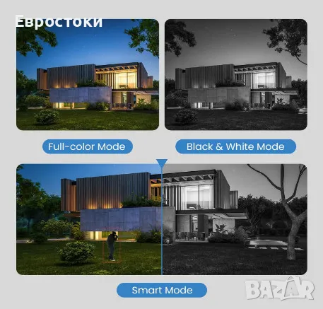 1080P FHD видео и цветно нощно виждане. С пълноцветно нощно виждане можете да видите живи цветове и остри детайли във вашите видеозаписи, дори при условия на слаба светлина. Това може да бъде особено полезно за идентифициране на натрапници или подозрителна дейност, тъй като ви позволява да виждате по-ясно и точно на тъмно.