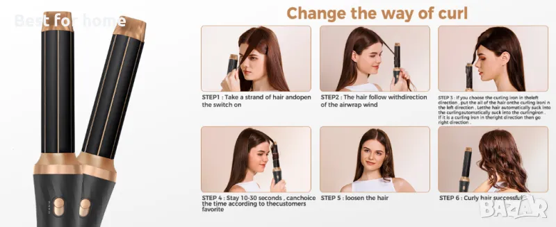 Съвети за използване на въздушна маша за коса: 1. Хванете малка част от косата на около 10 см от върховете. 2. Затворете косата, косата ще се увие автоматично. 3. Увиването трябва да започне от върховете на косата. 4. Създайте напрежение и насочете към главата си. 5. Задръжте на място за 15s. 6. Изключете и освободете. Използването на клечки за къдрене с горещ въздух е различно от обикновените клечки за къдрене. Ако сте объркани по време на употреба, моля, свържете се с нас и ние ще ви предоставим професионална сервизна поддръжка.