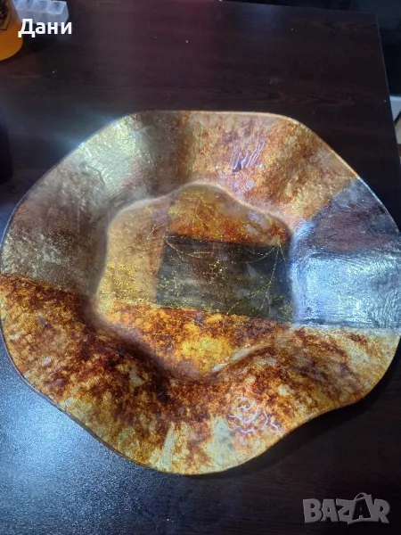 Голям разноцветни стъклен поднос, с диаметър 38 сантиметра