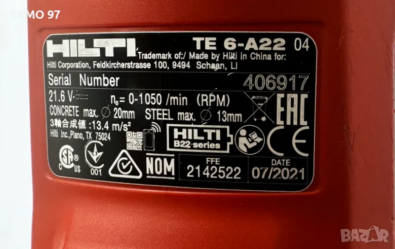 Hilti TE 6-A22 AVR - Акумулаторен перфоратор перфектен!
