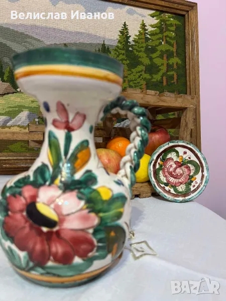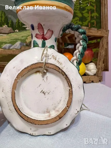 Винтидж Италианска ваза и чинийка майолика. Ръчно рисувани.Отлично състояние. → Обява 48274361