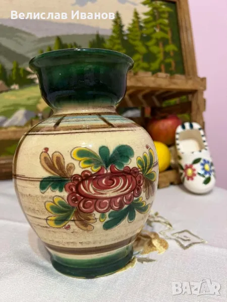 Глазирана керамична ваза и порцеланова обувка за стена. От Италия. Перфектни.