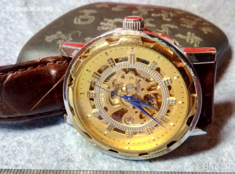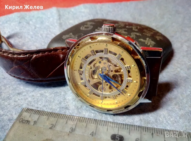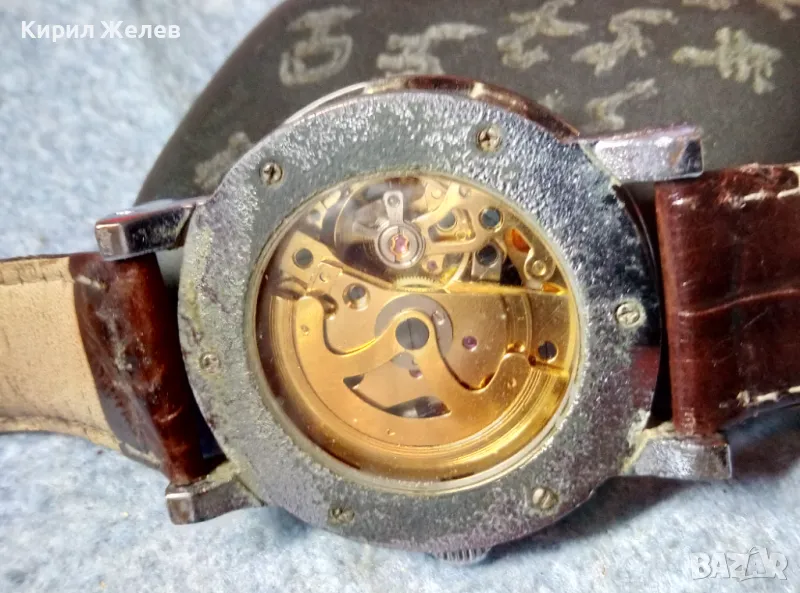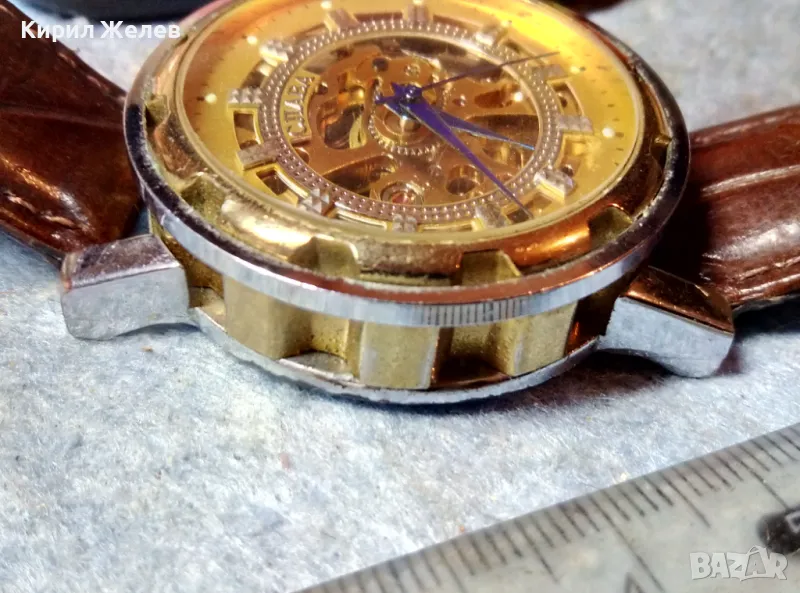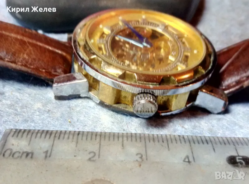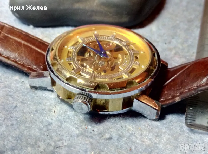 СЛАВА Скелетон РУСКИ ЧАСОВНИК АВТОМАТИК с КАИШКА Nagata SPAIN Естествена КОЖА ФУНКЦИОНИРАЩ 49334