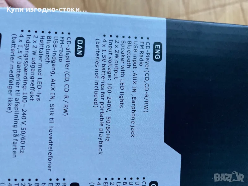 Преносим CD плейър с FM радио и LED осветление.
