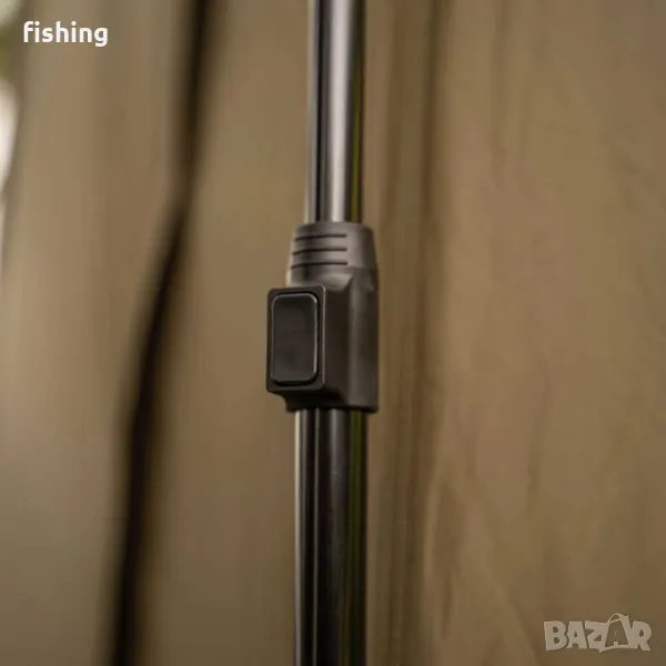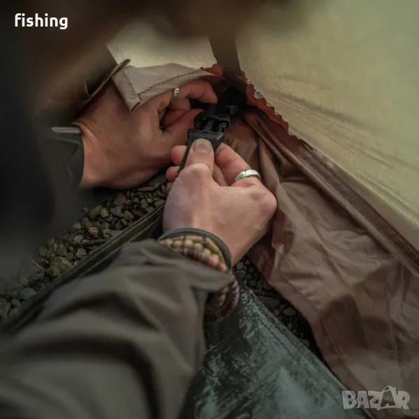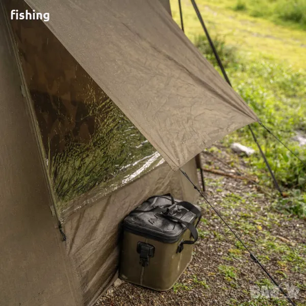 - Идеален за риболовци, които искат по-голяма палатка за 1 човек с увеличено пространство и пространство за главата, или да се използва като палатка за 2 души
