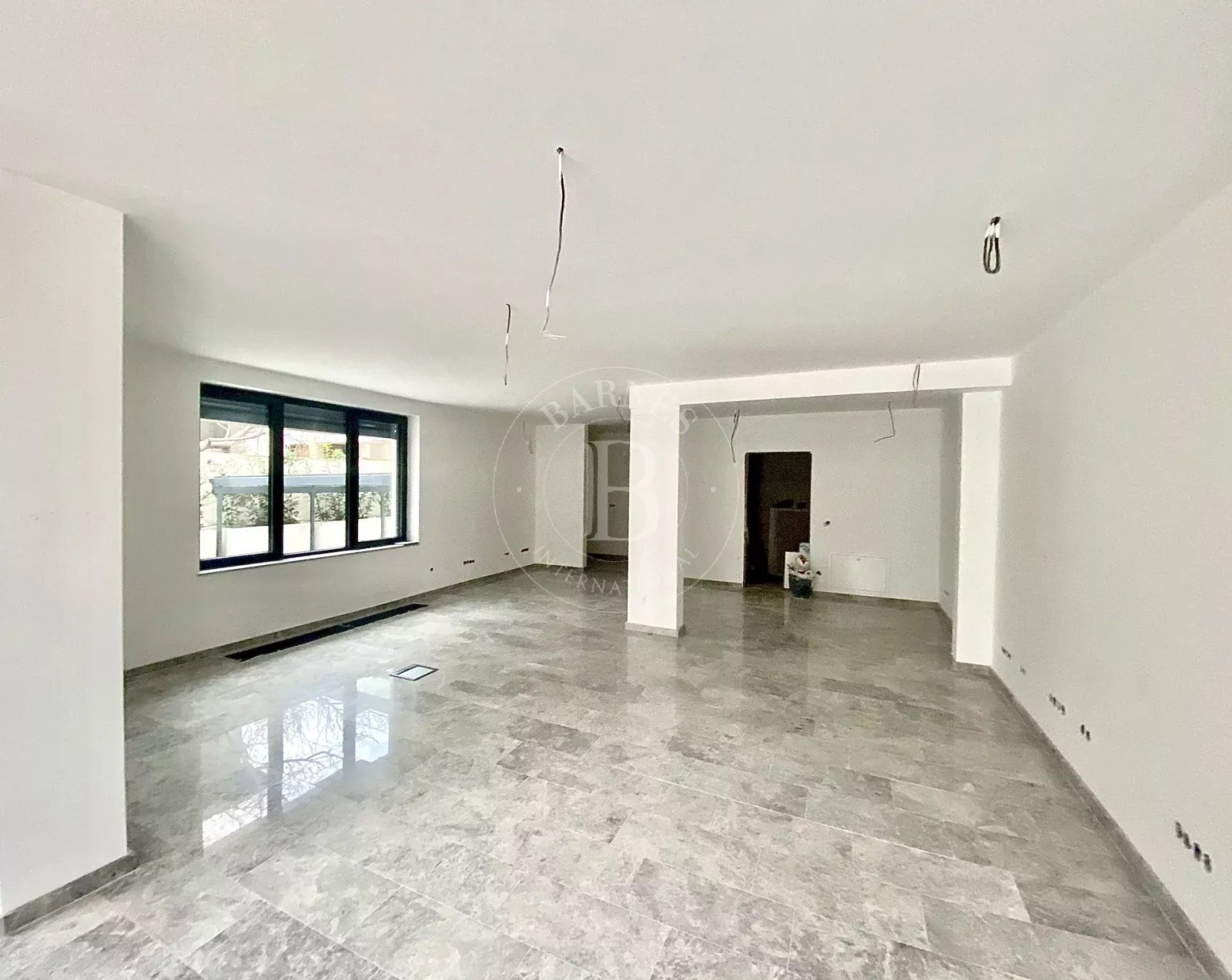 Офисът е довършен със стени и настилки, както и готов санитарен възел.