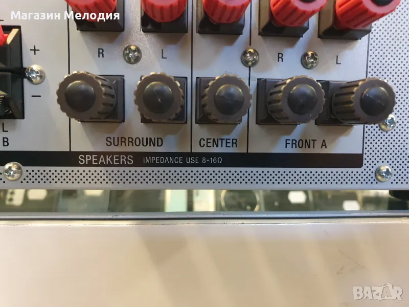 Съраунд режим център 8 Ohm: 100 W Съраунд режим отпред 8 Ohm: 2 x 100 W Входове/Изходи: