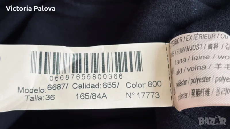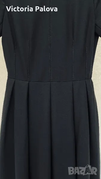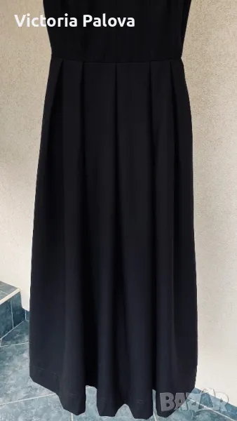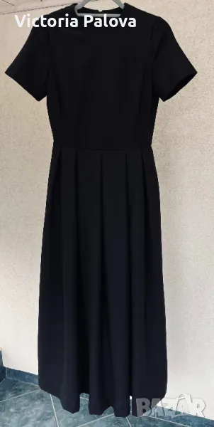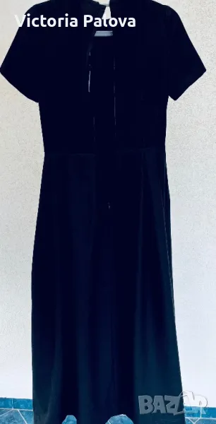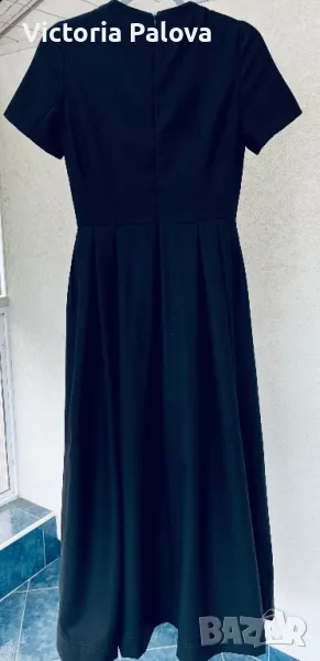 Красива и съвременна рокля, невероятна кройка и материя ( мека и много приятна на допир галеща вълна - 80% ), подплатата е също гладка и мека ( 100% вискоза). Роклята е със скрит цип на гърба - 55см и вътрешни странични джобове, долната част е с плохи, падащи тежко и красиво. Размери:рамо - 36см, ГО - 44см, талия - 36см, дължина - 134см,