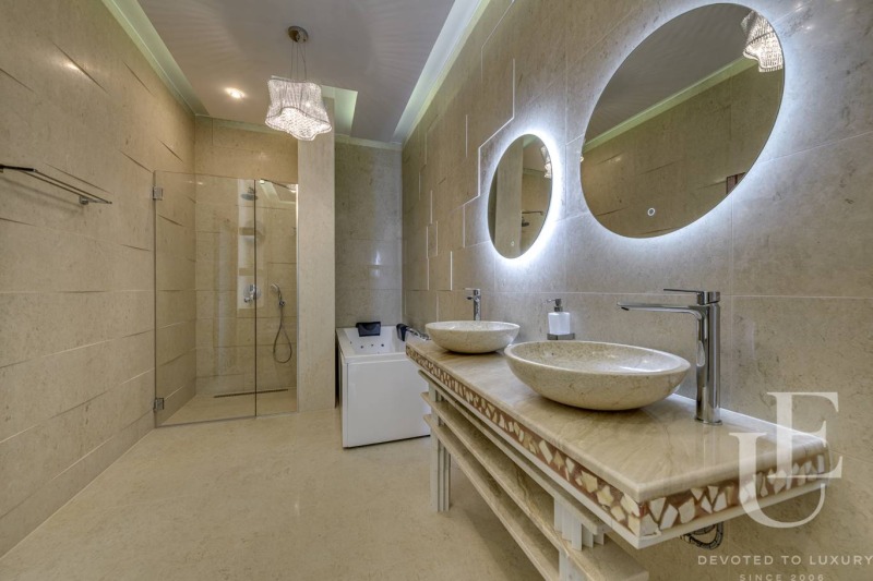 Къщата е изградена с мисъл за комфорт и стил. Довършителните работи са изпълнени с висококачествени материали, а интериорът е реализиран по индивидуален дизайнерски проект с елегантно обзавеждане, което съчетава модерни линии и уютна атмосфера.