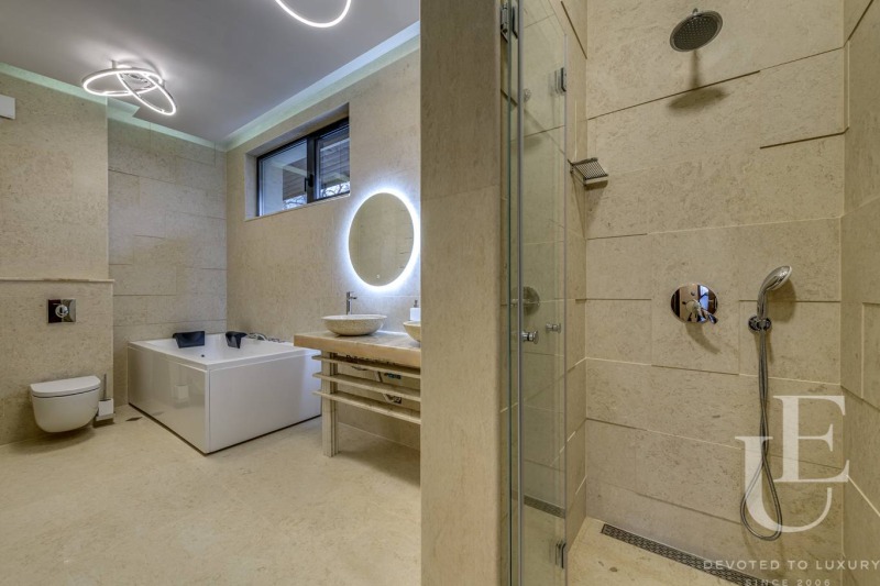 Второ ниво: красиво емпоре, родителска спалня с дрешник, голяма баня и тераса, две големи детски спални с баня, дрешник и обща тераса
