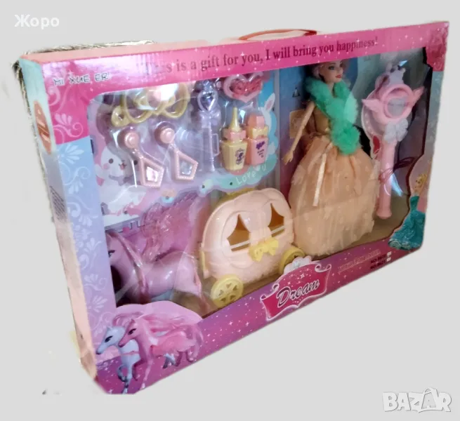 Комплект принцеса Пепеляшка с каляска ,конче , жезъл и аксесоари