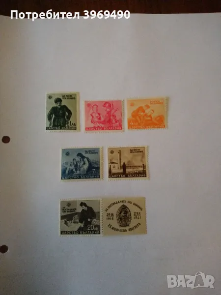 Серия от 6 пощенски марки от България 1942 г. → Обява 48281022
