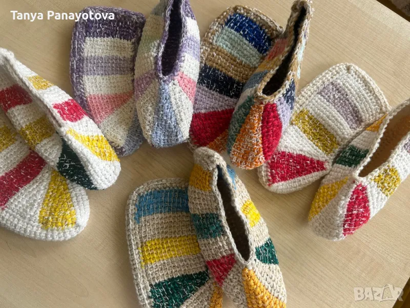 Ръчно изплетени шарени топли терлици