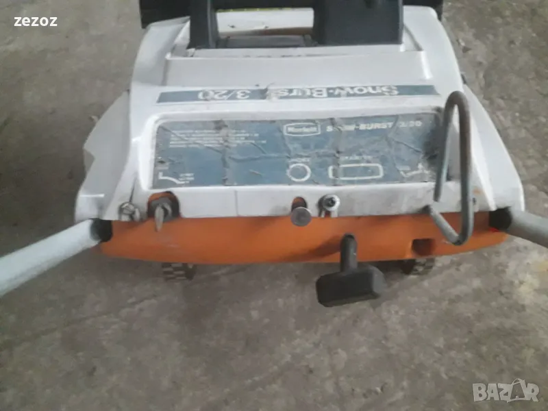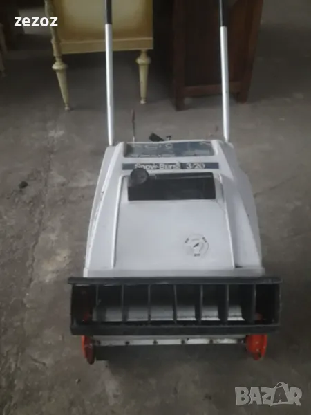Машината е без самоход,произход-САЩ.Двутактов бензинов двигател-3.0к.с.ширина на загребване-50см.,височина-20см.изхвърля снега посредством жалузи,които могат да променят посоката си.Със запалването тръгва и работната част.Отлична работа на двигател.