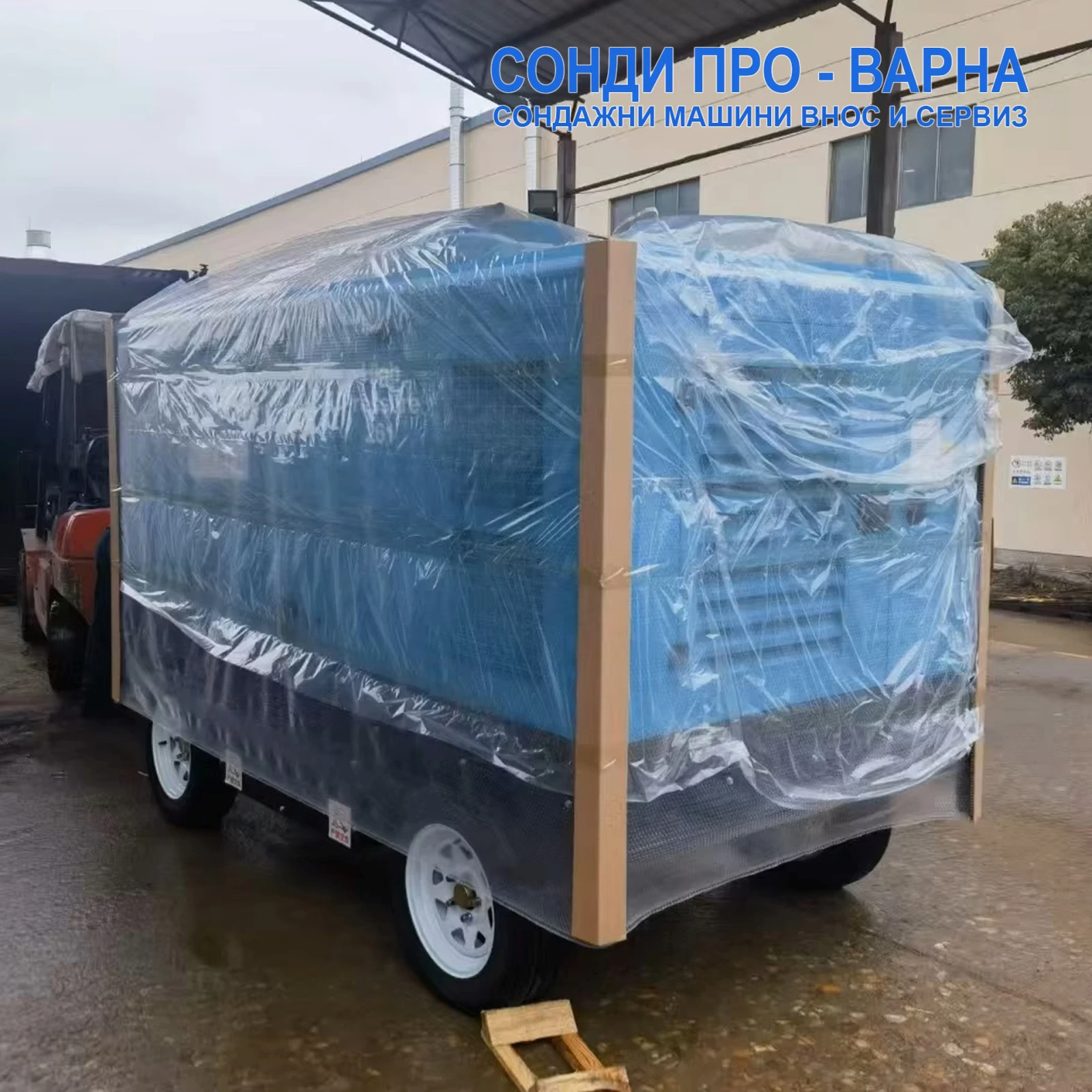 Компресор Cummins LN30 30. 0м3/мин 260HP дизел, 14 бара . Нов Професионален Мобилен винтов компресор LN21m3-10, 21м3/мин (21000 л/мин), дизелов двигател 260 к. с, 14 бара . Цената е за компресора без ДДС, и с гаранция: до 12 месеца и до 1000 мото часа, което се изпълни първо. Производство и доставка по поръчка до 90 дена с морско навло цена: 57000 ЕВРО без ДДС в промоция до 30. 12. 24 година, след промоция 60000 ЕВРО без ДДС Производство и доставка по поръчка до 40 дена с жп влак навло: +5200 Лева с ДДС Производство: Завод в Китай! ЕС СЕРТИФИКАТ: ДА! . - Други модели сондажни машини и компресори предлагани от Сонди Про-Варна, може да видите в страницата ни в mobile. bg: tampers. mobile. bg - Друго предлагано ново индустриално оборудване внос от Европа предлагано от РЕМТЕХСТРОЙ ГРУП може да видите на адрес: www. remtechstroy. eu/bg . Дизеловият компресор LN30m3-10 е необходим за непрекъснато подаване на сгъстен въздух към различни пневматични инструменти. Може да се използва в строителството, в различни производствени предприятия, складове. Също така се използва за въздушно пробиване със