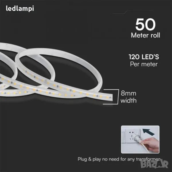 LED лента 2835 220V IP65 120LED Неутрално Бяла Светлина 50m/ролка → Обява 48283331