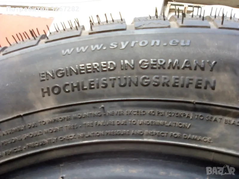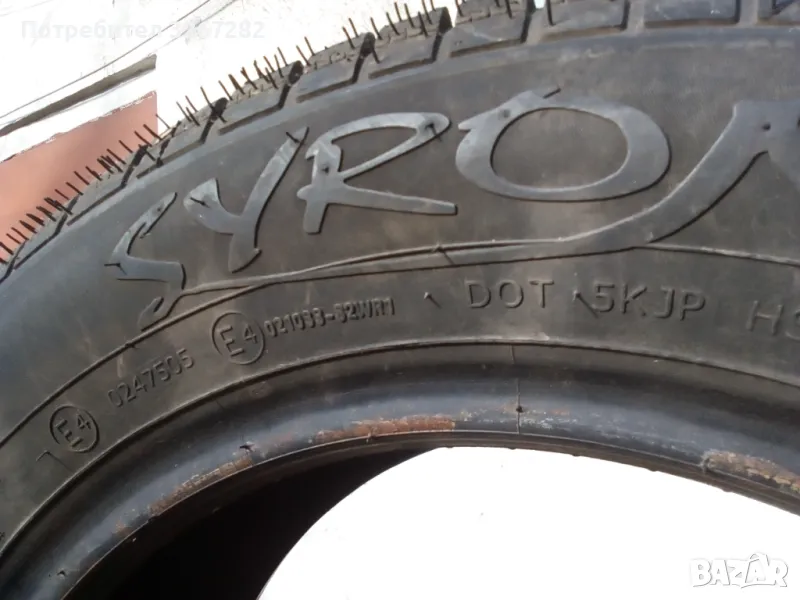Четири броя, отлично запазени автомобилни гуми, размер 195/60/15, марка "Сайрон" Посочената в обявата цена е за една бройка.