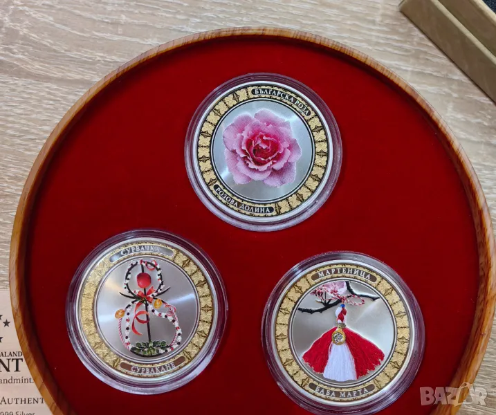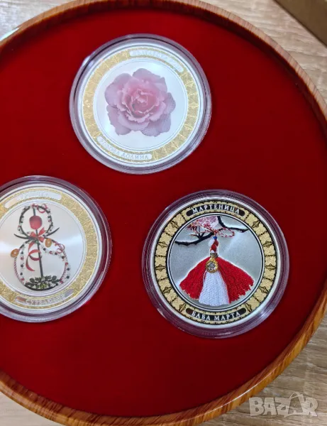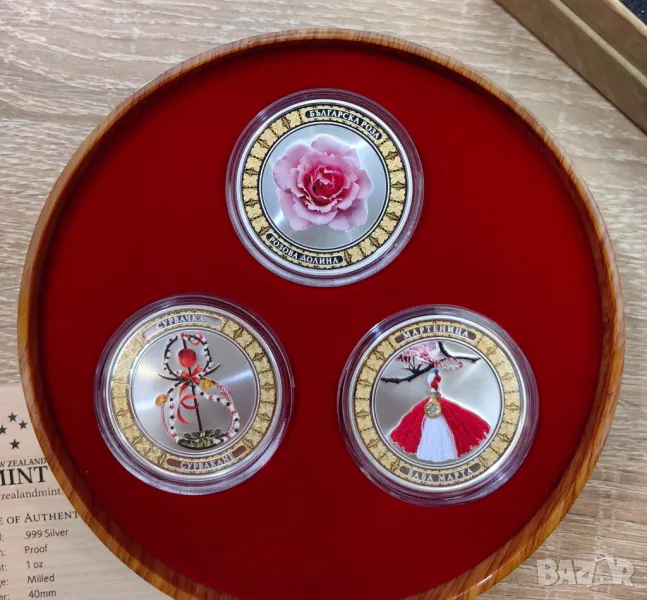 Серия от 3 монети - Българска роза , Сурвакане , Баба Марта - 3 оз.сребро 999 → Обява 48285022