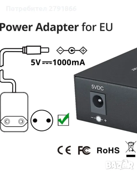 - Изходно напрежение: 5VDC 1.0A.