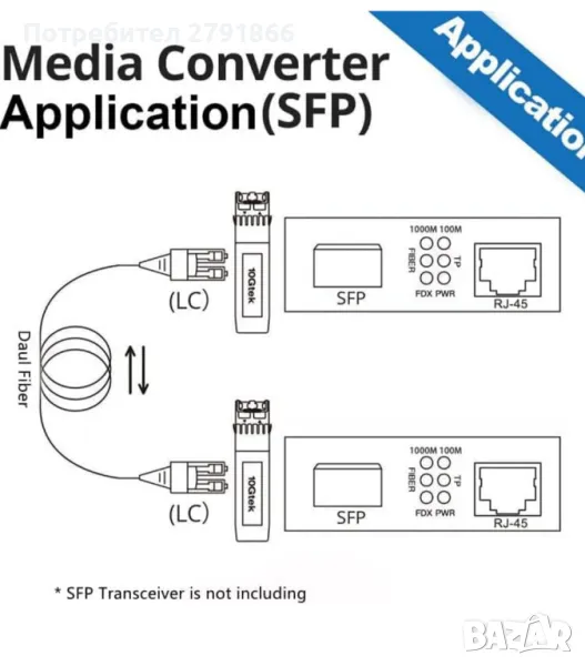 - SFP трансивър модул за SMF.