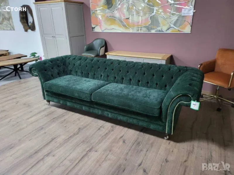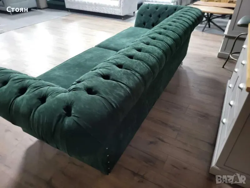 Голям зелен диван от плат Честърфийлд - четворка → Обява 48286348
