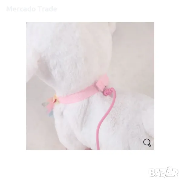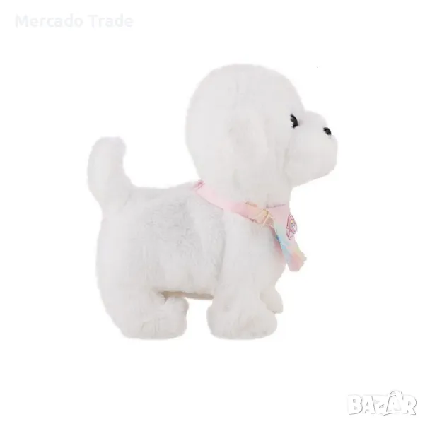 Механично куче Mercado Trade в бял цвят, което щом сложи каишката, ходи лаещо и махайки с опашка.