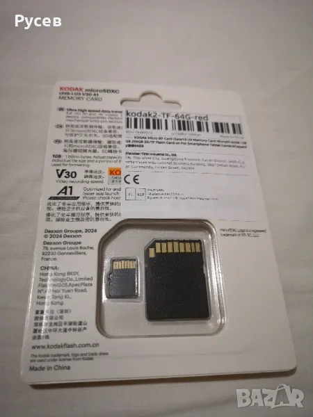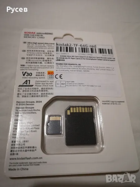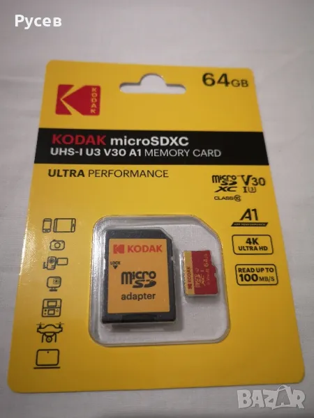 Kodak Micro SDXC UHS-I U3 A1 V30 Card 64 Class 10 (+ адаптер), запечатана в оригинална опаковка.