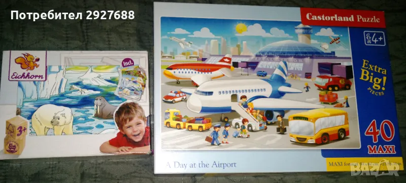 Снимка 9 и 10 -дървени кубчета Eichhorn 12 броя, Макси пъзел 40 парчета =30лв