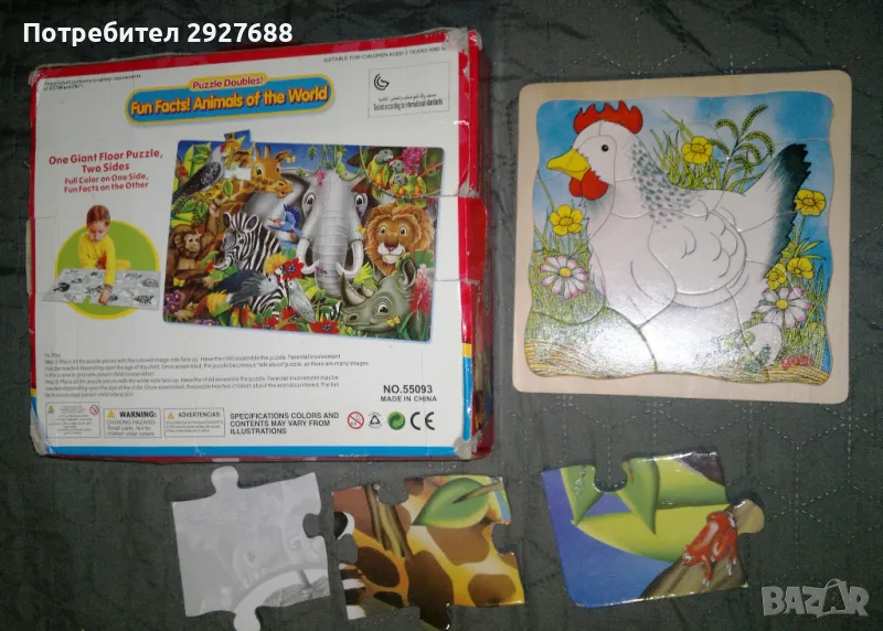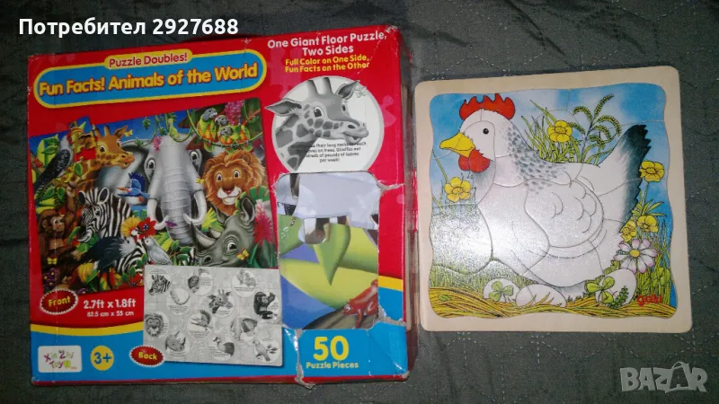 Снимка 7 и 8- дървен многолсоен пъзел Goki -4 пъзела в едно с нестандратни форми, картнонен Макси пъзел двустранен= 25 лв.