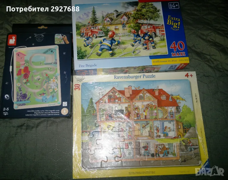 Снимка 5 и 6 -магнитен лабиринт Janod , картонен пъзел 40 Макси парчета,дървен пъзел 30 парчета = 35 лв.