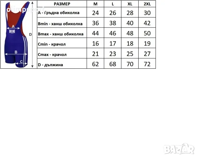 Трико за борба и вдигане на тежести - двулицево (синьо и червено). Трикото е подходящо за тренировки и състезания. Материал: 80% полиестер, 20% ликра. Размери - M, L, XL, 2XL