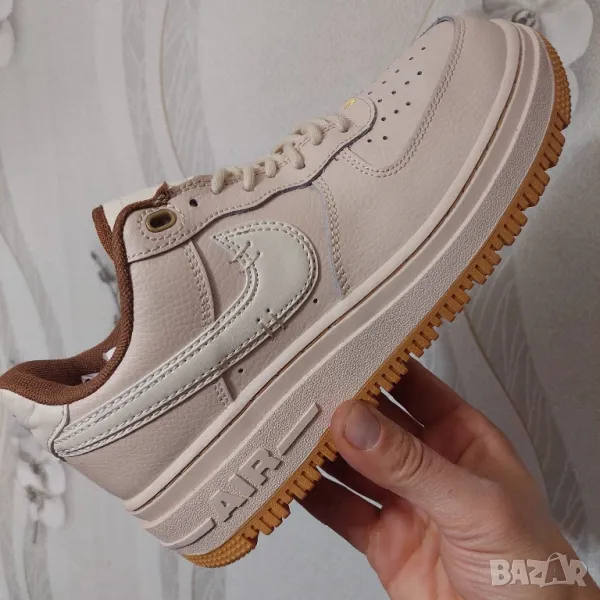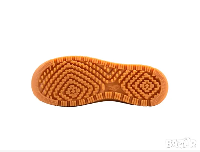 КОМФОРТ: Air force 1 се отличава с обичайния нисък профил на всички военновъздушни сили с подплатени подплънки на пищяла, фирмена лепенка на подпухналия език, плоски връзки и перфорирана кутия за пръсти.