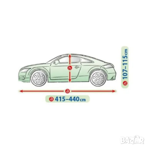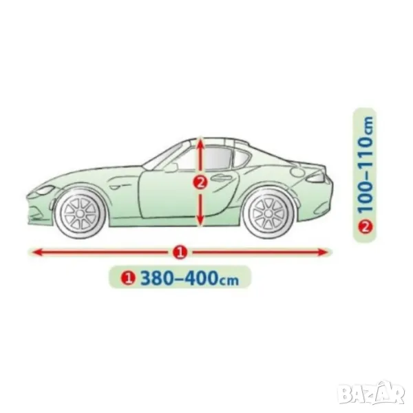 Покритието не се намокря, като в същото време отвежда водните пари навън, предпазвайки колата от ръжда и плесен. Подходящо както за краткотрайна, така и за продължителна употреба. Покривалото може да се пере на ръка на 40 градуса.