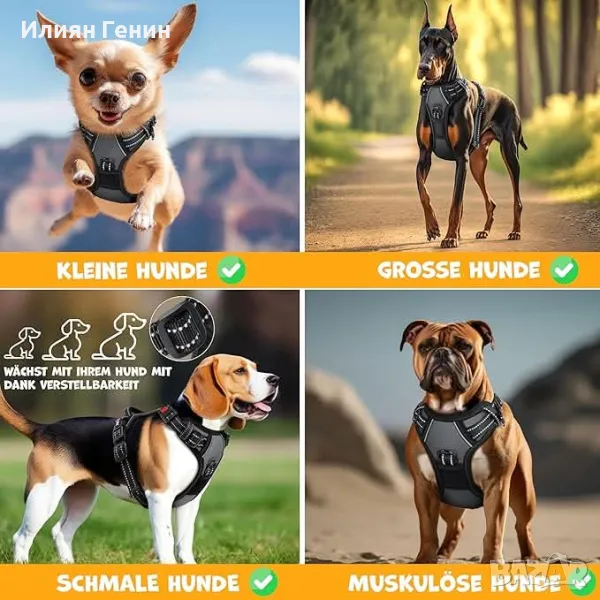 нагръдник за кучета Без дърпане и задушаване за средни кучета, Дишащ и мек нагръдник M размер - 20.00лв.