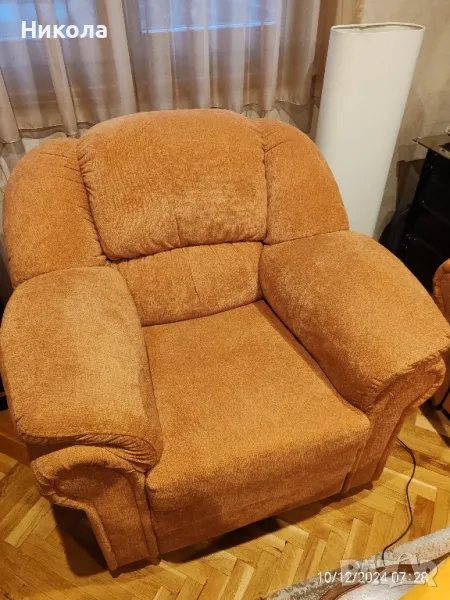 Гарнитурата е нова. Произведена в Австрия с опция на дивана за сън. Много удобна и функционална. Диван, два фотьойла и две табуретки. В жилището не се пуши.