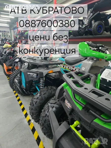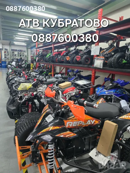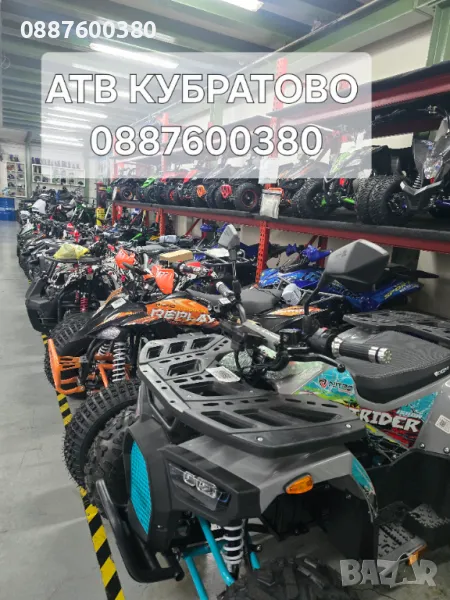 ТОП модели на бензиновите и електрическите АТВта и КРОСОВИ МОТОРИ от АТВ КУБРАТОВО и NITRO MOTORS, ALFARAD, KXD PRO, VELOCIFERO, BASHAN и др. Богат АСОРТИМЕНТ от НАД 70 модела за малки и големи от 3г до 100г. + големи ДВУМЕСТНИ АТВта с Т3B сертификат и РЕГИСТРАЦИЯ!Цени от 550 лв до 4600лв за офроуд вариантите и до 10500 лв за АТВта с РЕГИСТРАЦИЯ! Резервни части и гуми за тях, гаранционен и извън гаранционен сервиз като основен вносител както на мотори така и на Резервни части от 2005г.и досега.
