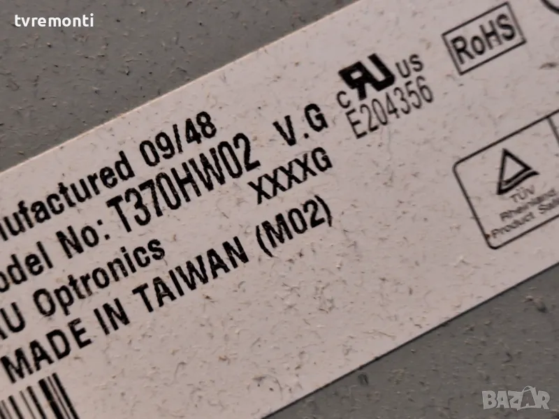 TCON BOARD , T370HW02 VG CTRL BD,37T04-C0M,for телевизор LG модел 37LF2510,for 37inc DISPLAY T370HW02 VG борда е проблем с гама Демонтиран от телевизор LG модел 37LF2510 със счупен дисплей T370HW02 VG тествана от нашия техник Ремонт на всички марки съвременни телевизори