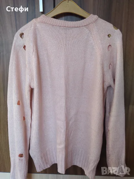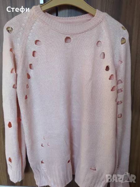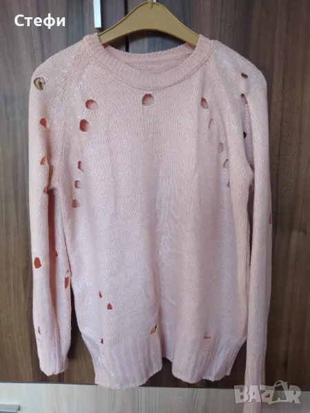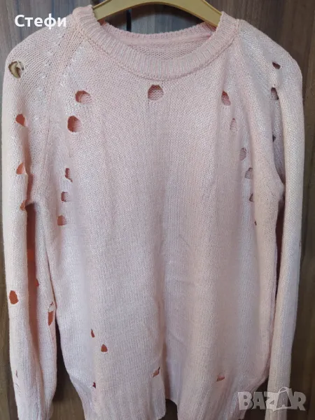 Дамски пуловер с дупки и лъскава част по него с цена 10лв