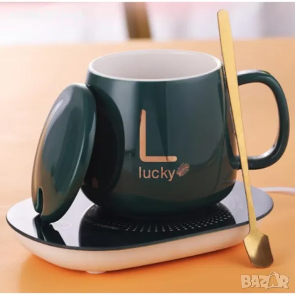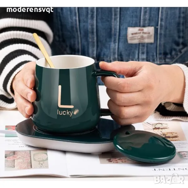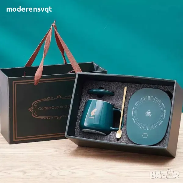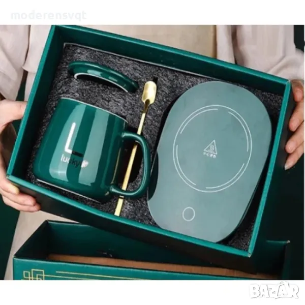 Чаша с дръжка с капак лъжичка и котлон в кутия подарък
