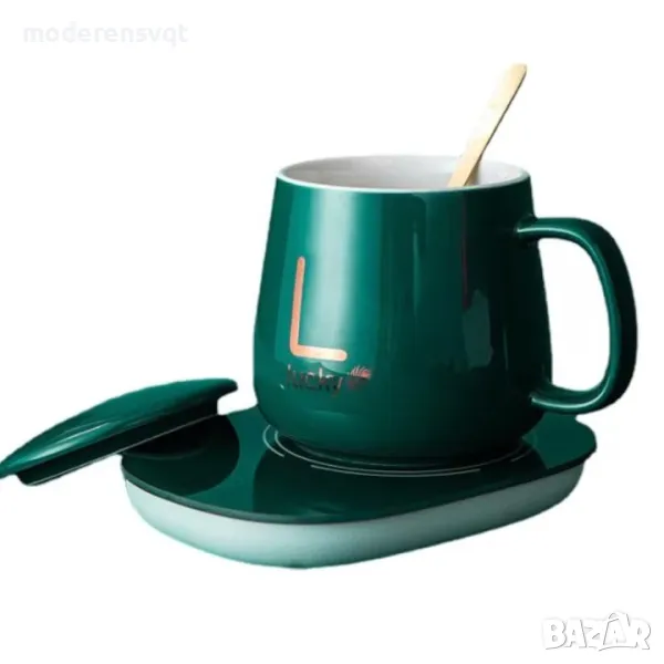 Чаша с дръжка с капак, лъжичка и котлон в кутия Зелено е изработена от висококачествена керамика с подходяща дебелина.