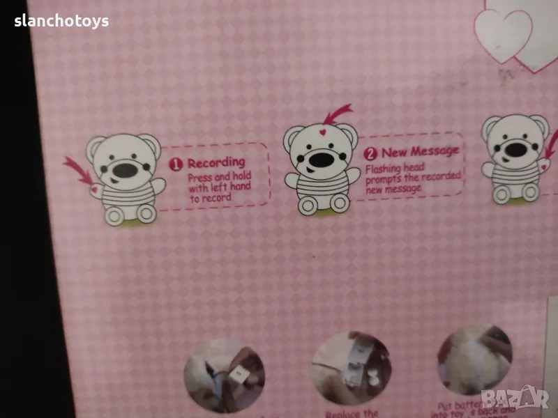 Размер 18см,с вградени батерии,лесни за подмяна.Раничката е по избор,синя или розово. Доставка с Еконт или лично за Сф. Има го и с 5 песнички на български и 1 приказка.