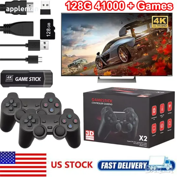 4K Ретро Конзола с HDMI, безжични джойстици за телевизор с вградени над 40000 игри и 2 джойстика с дизайн на Плейстейшън. Най-нов модел с кристално 4К качество на картината и напълно безжична.